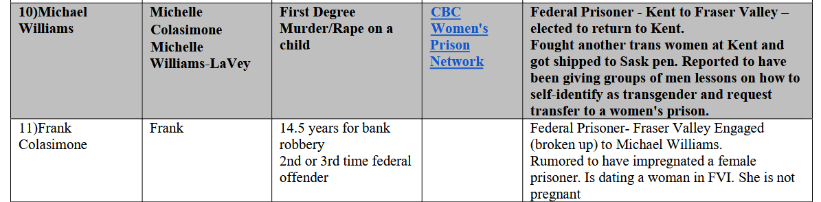 According to an anonymous whistleblower, in one of the institutions where Williams has been placed, Saskatchewan Penitentiary for men, he was allegedly teaching male inmates how to claim to be transgender in order to secure a transfer to the female estate.