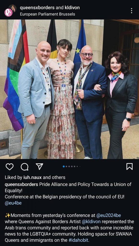 The Belgian presidency of the Council of the EU hosted the Conference ‘Pride Alliances and Policy: Towards a Union of Equality’ on May 17 at the Residence Palace in Brussels, where, in footage shot by Divon, drag performances were also held. Also in attendance was Sven Lehmann, Germany’s Commissioner for the Acceptance of Sexual and Gender Diversity (also known colloquially as the “Queer Commissioner”).
