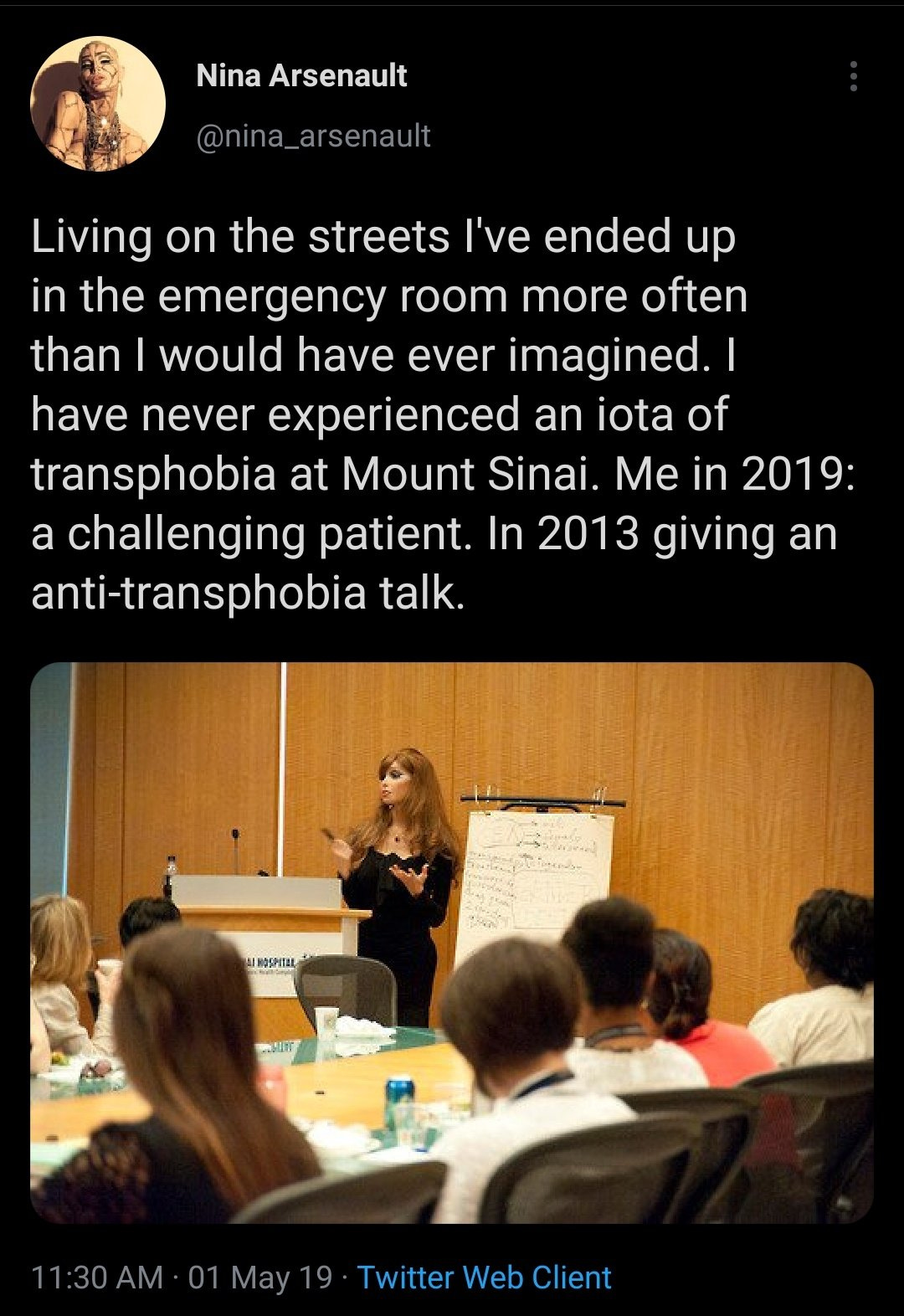 Nina Arsenault is a Canadian trans-identified male who has had over 60 cosmetic surgery procedures. Arsenault funded his surgeries via the sex industry while working as a lecturer at York University, including camming, stripping, and prostitution.