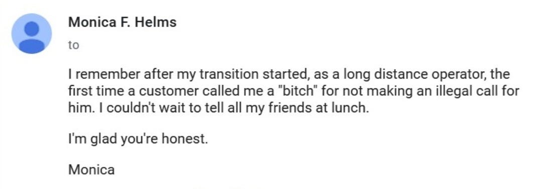He also remarks that his supervisor who “picked on” him the most frequently “happened to be an out lesbian, who used to be my friend before I started transitioning.”