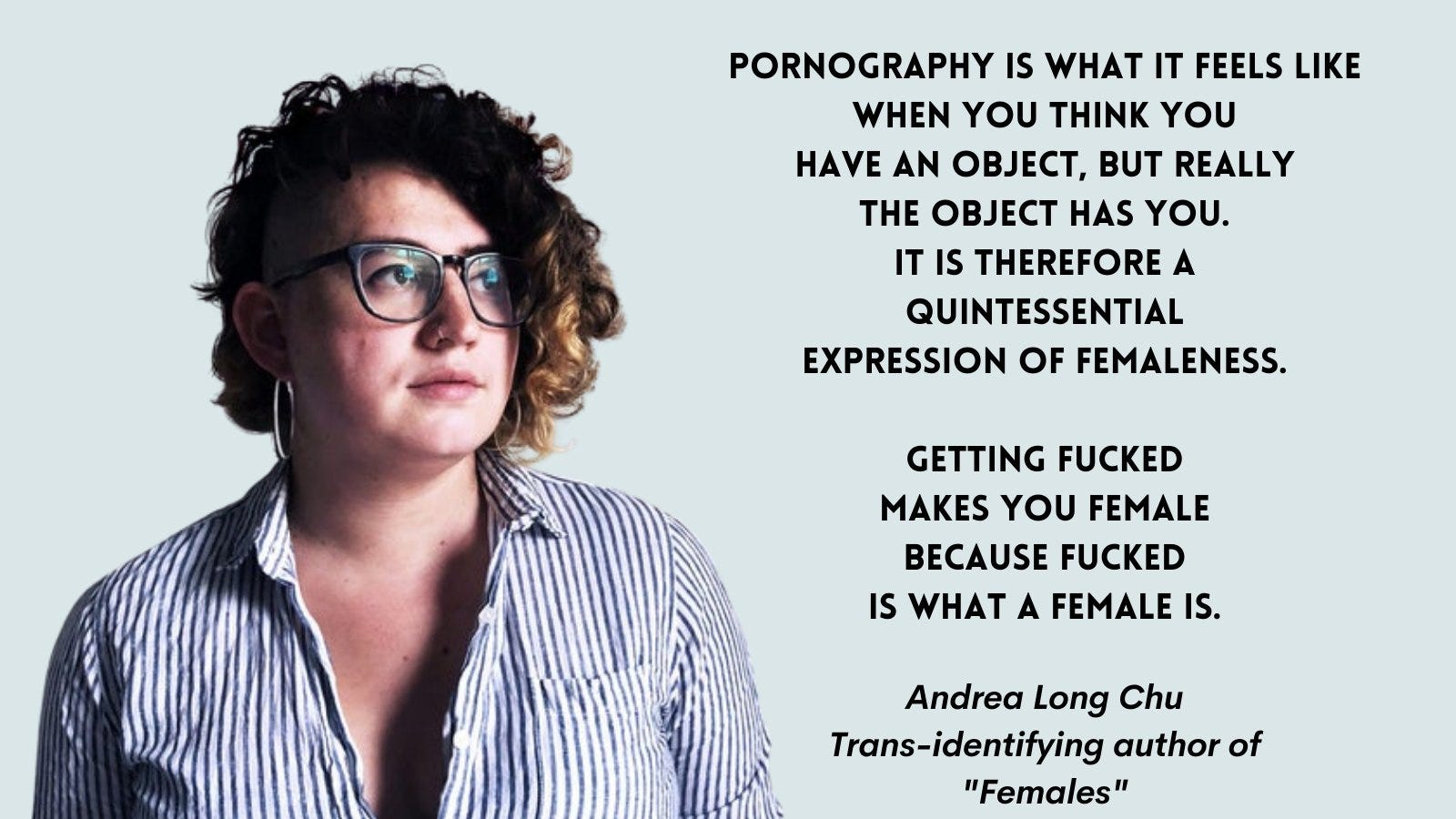 Andrea Long Chu is far from alone in this line of thinking, as is made evident in the history of the conceptualizing of “gender identity”, and also in the writings of other prominent trans-identified men.