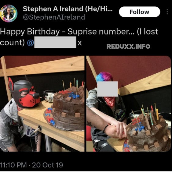 Two years later, in 2021, Ireland shared the photo of himself with the teen girl from his Pride in Surrey account in a celebratory post about International Fetish Day.